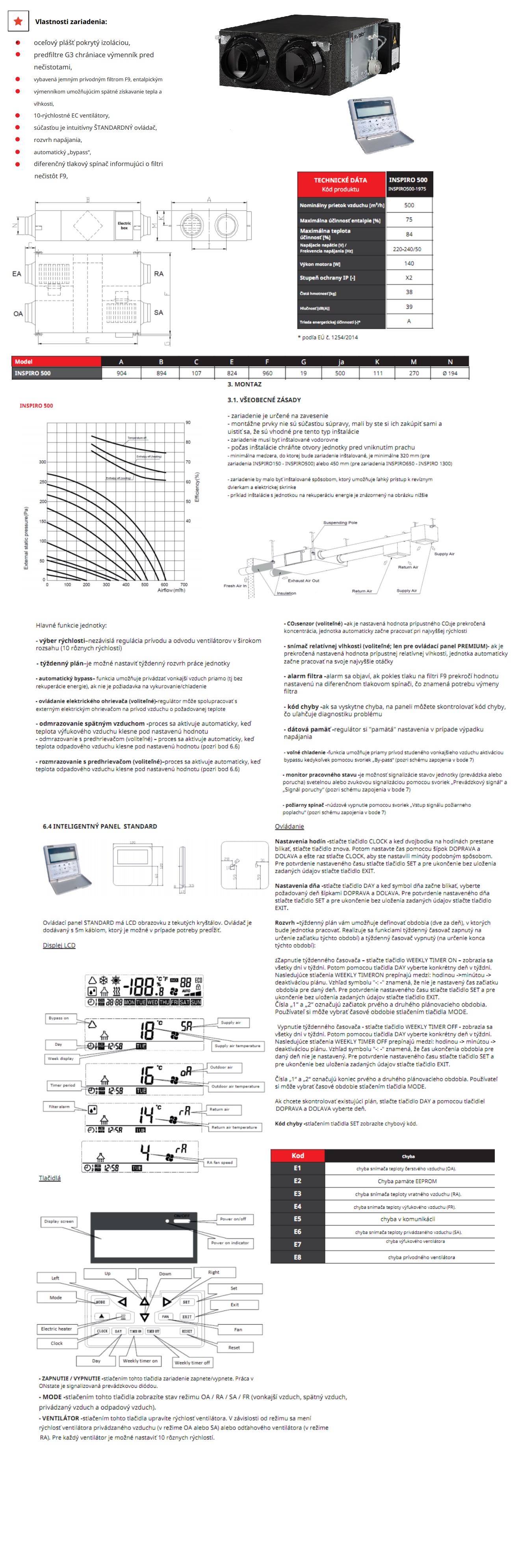 privádzaného vzduchu. Komunikácia a ovládanie zariadenia prebieha cez v balení riadiacou jednotkou STANDARD alebo možnosť dokúpenia riadiacej jednotky PRESTIGE