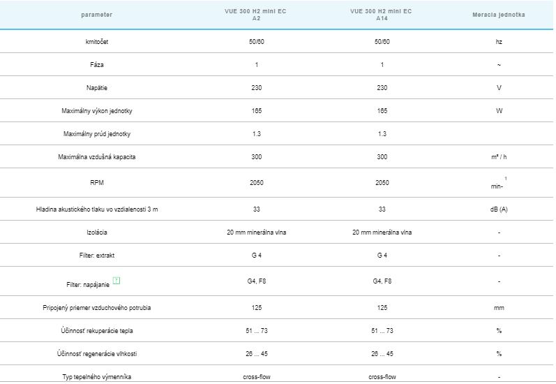 - Rekuperátor VUE H2 mini EC jednotky sú vybavené výmenníkom tepla s priečnym prietokom z polymerovaného celulózy.