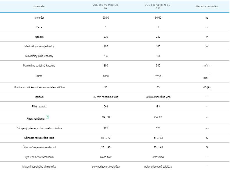 - Rekuperátor VUE V2 mini EC jednotky sú vybavené výmenníkom tepla s priečnym prietokom z polymerovaného celulózy.