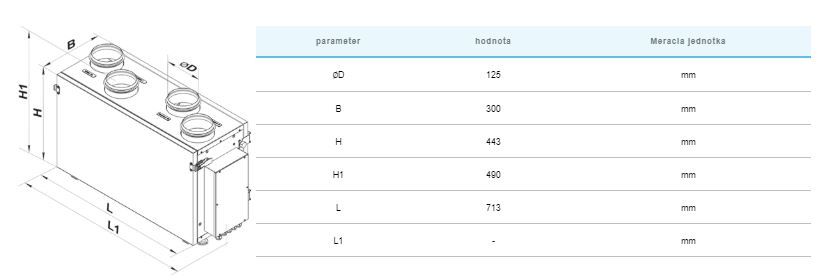 - Extrakčný vzduch je čistený vstavaným filtrom s filtračnou triedou G4.