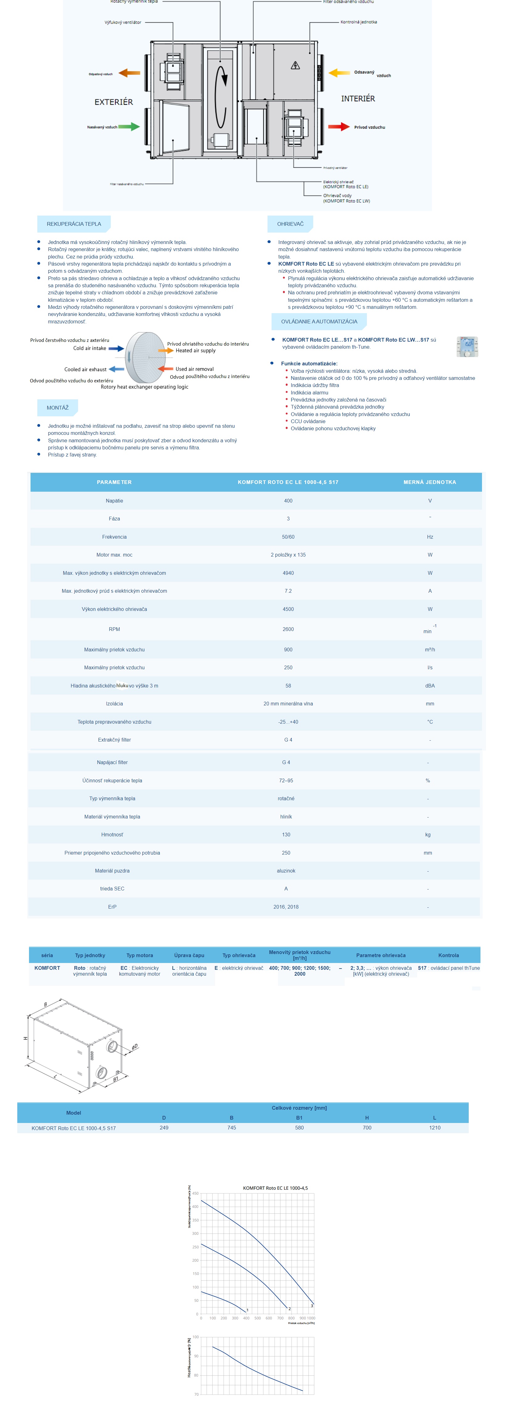 Rekuperátor Blauberg KOMFORT Roto EC LE 1000-4,5 S17 – 900m3/h+predohrev jednotky pre efektívne prívodné a odvodné vetranie v bytoch, domoch, chatách a iných objektoch.