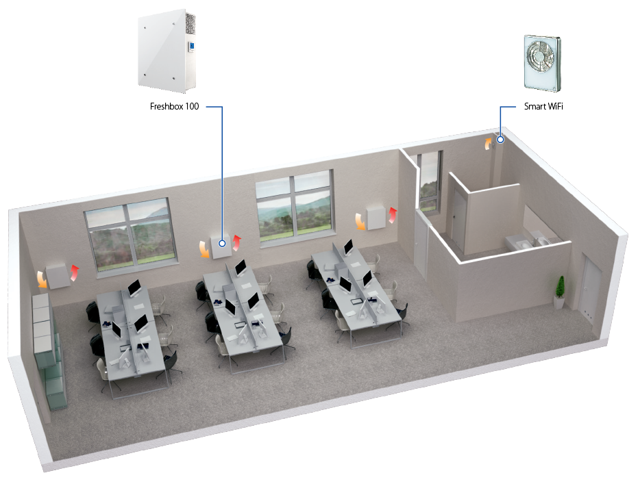 Rekuperátory vzduchu do jednej miestnosti Blauberg FRESHBOX 100ERV s entalpickou vložkou.Energeticky efektívne decentralizované vetranie.Verzie s integrovaným predhrievaním Freshbox E-100 ERV a dohrievaním Freshbox E1-100 ERV pre použitie v chladnom podnebí.Verzie s entalpickým výmenníkom tepla pre použitie vo vlhkom a teplom podnebí.
