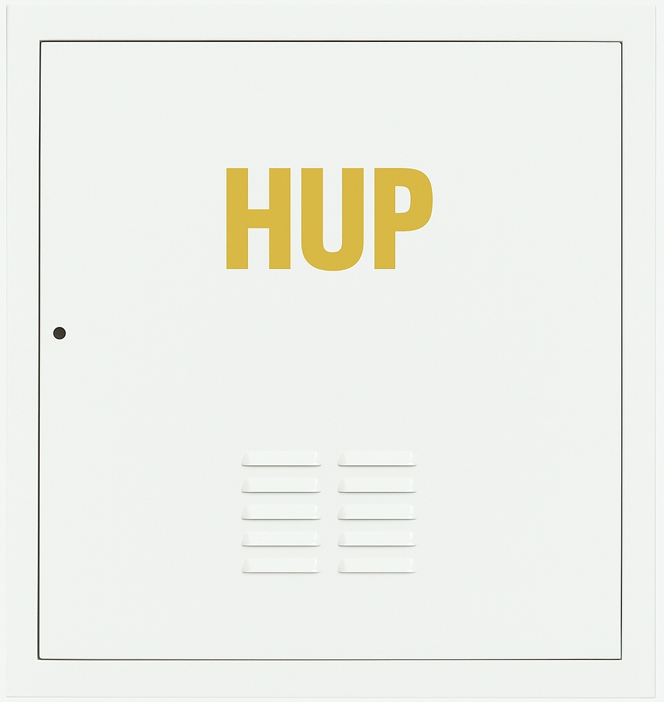 Revízne dvierka k plynomeru z pozinkovaného plechu s informačným označením HUP (samolepka priložená).