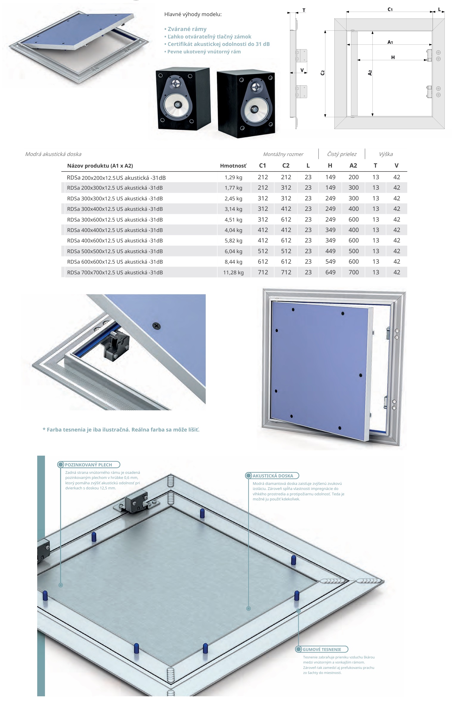 Revízne dvierka typ RDSa 300×300 -12,5mm SDK -akustické-protihlukové -31DB