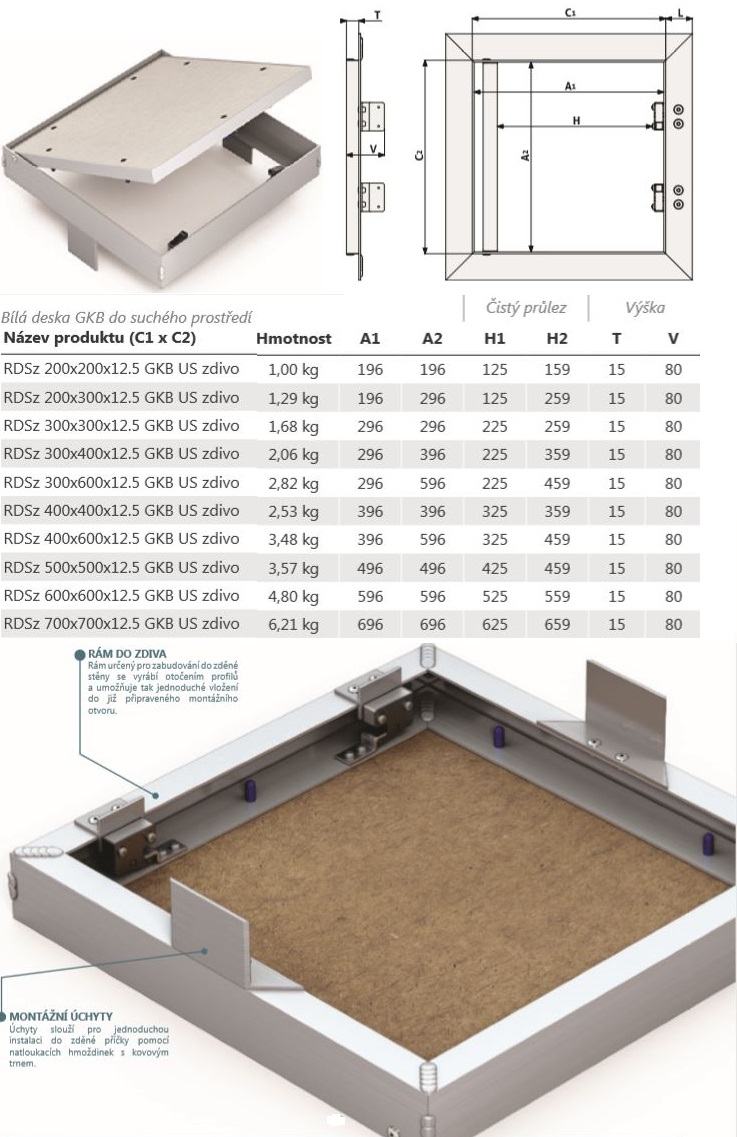 Revízne dvierka sú vyrábané z hliníkových profilov, ktoré sú zvárané do
