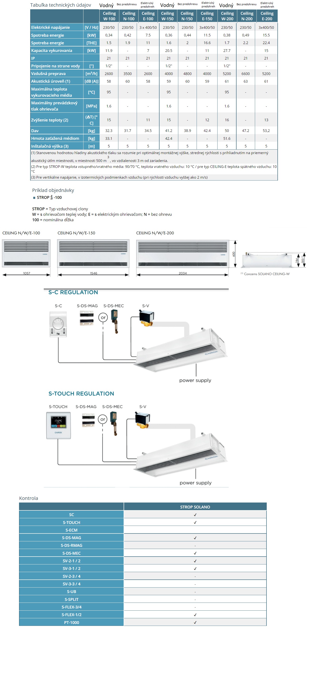 Menej viditeľná vzduchová clona vďaka zapustenému dizajnu Oblasť použitia Pre reprezentačné miestnosti ako napr obchodné priestory, reštaurácie, showroomy a pod. Vzduchové clony SOLANO CEILING sú určené pre horizontálnu inštaláciu, priamo nad dvere ( do výšky 5 metrov ), aj pre existujúce podhľady. Technické vlastnosti 3 typy dĺžok: 1 m, 1,5 m a 2 m 3 nastavenie rýchlosti ventilátora 5,0 metra výška inštalácie * Uhol fúkacej dosky je možné nastaviť ručne Dá sa zapustiť do stropu Tangenciálny ventilátor Ovládané z termostatom SC alebo S-TOUCH Kontakt snímača otvorených dverí Štandardom je pokročilé ovládanie Možnosť pripojenia BMS (správa budov). Rôzne režimy prevádzky Režim MASTER-SLAVE * Izotermické, vertikálne fúkanie (pri rýchlosti vzduchu 2 m/s)