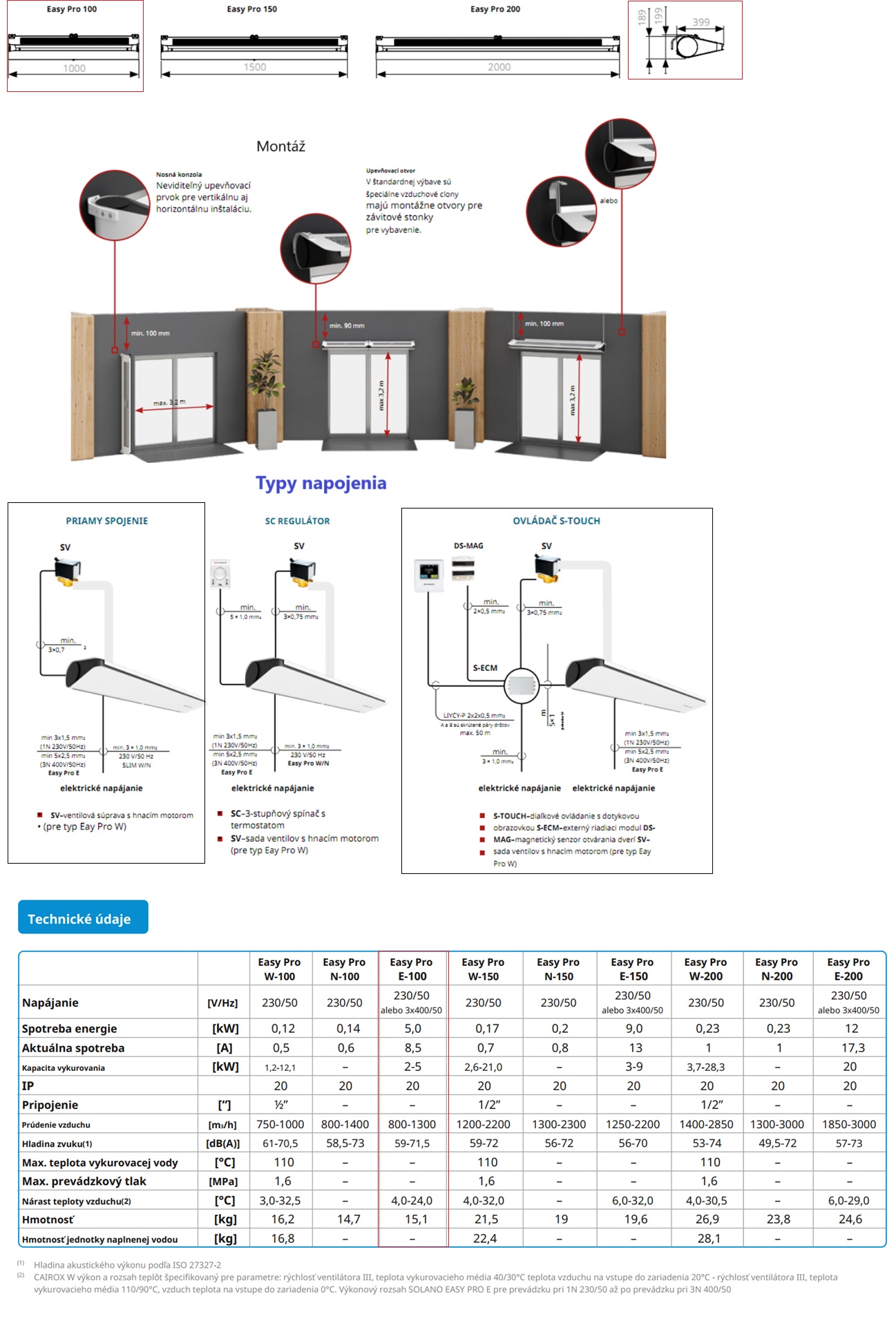 Vzduchová clona s nízkou výškou s dĺžkou 1,0 m, pre výšku dverí do 3,2 m 400V/3ph. Dostupné vo verziách s elektrickým výmenníkom tepla (E). Vzduchová clona EASY Pro je určená na zníženie hladiny hluku. V tichom režime funguje tichšie ako konverzácie okolo neho. Je takmer tichý a nespôsobuje okoliu žiadne nepríjemnosti. Ovládanie S-TOUCH pomocou externého ovládacieho modulu S-ECM je povinným doplnkom pre zaručenie správneho fungovania clony. Vzduchová clona dobre funguje v stredne veľkých prevádzkach ako sú športové haly, supermarkety, nákupné centrá, ale aj menšie priestory ako obchody, hotely, kancelárie, reštaurácie a pod.