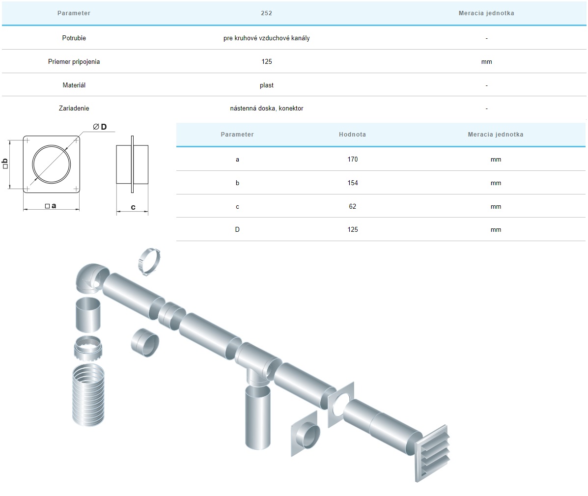 sa vsúvajú do potrubia Ø125mm.Dekorácia montážnych otvorov.Plastová
