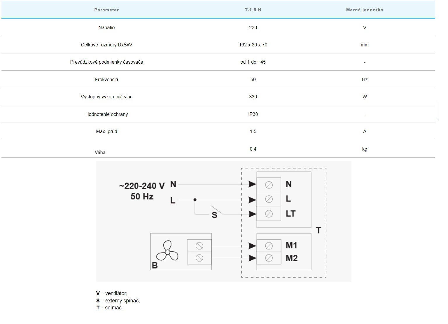 Časový dobeh.Umožňuje prevádzku ventilátora v nastavenom čase po stlačení gombíka na vypnutie ventilátora.