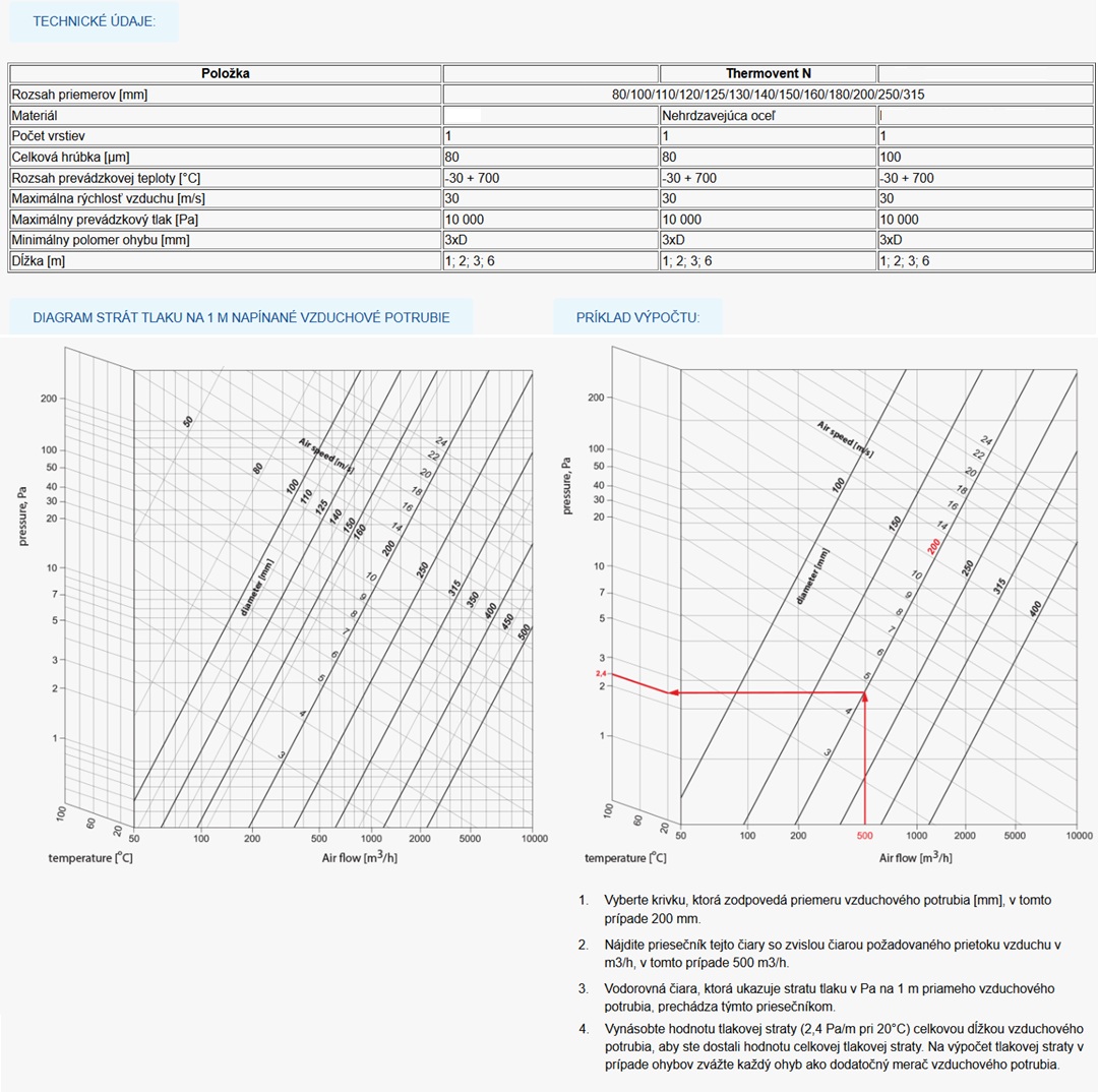 Nerezové flexibilné potrubie Thermovent 80/10m do 700 stupňov celzia.Poloflexibilné vzduchové kanály z nehrdzavejúcej so špirálovým švom s vysokými aerodynamickými a pevnostnými charakteristikami.