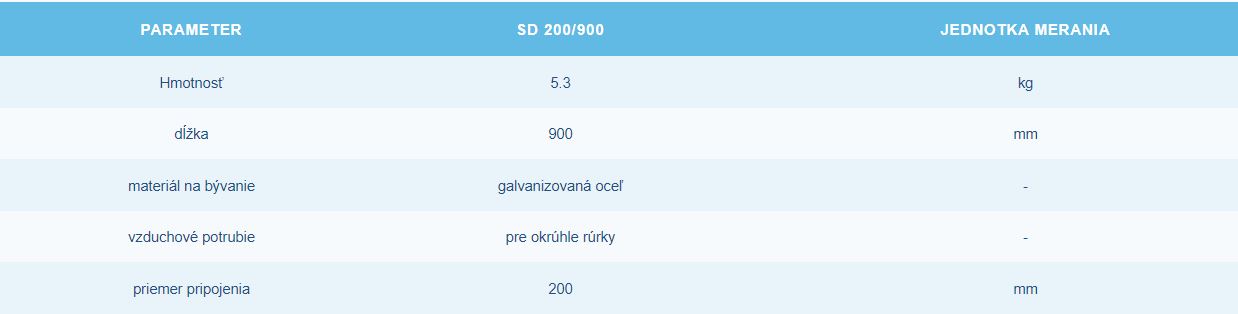 Tlmič hluku BLAUBERG SD 200/900 – pevný slúži na zníženie hluku z ventilačných systémov, ktorý sa šíri cez vzduchové kanály systémov.Používa sa spolu s hlukovo izolovanými ventilátormi v budovách s vysokými požiadavkami na ochranu proti hluku.