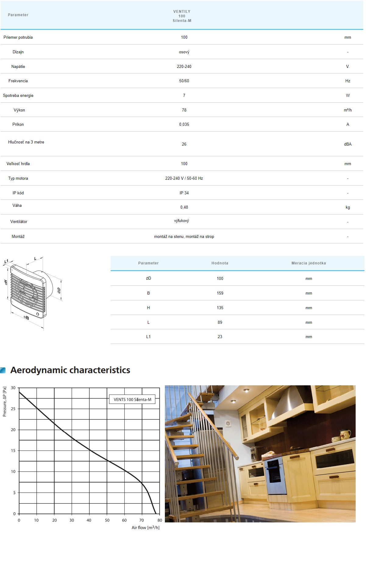 Ventilátor a motor sú navrhnuté špeciálne pre tichý chod.Krytie IP34.