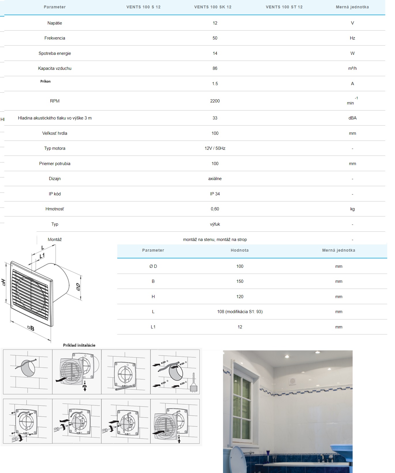 Ventilátor do kúpeľne pre potrubie 100mm výkon 86m3/hVýbava:Základ:zapínanie s vypínačom na svetlo 12 voltov.Balenie neobsahuje trafo na 12 voltov.Ventilátory do kúpeľne a wc sú určené na nepretržité alebo periodické