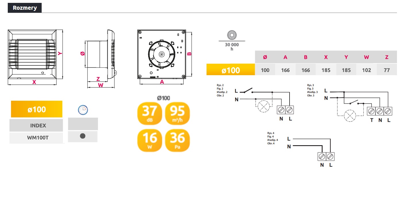 Ventilátory do kúpeľne a do WC 95m3/h priemer 100mm sú vybavené automatickou žaluziou, ktorá sa otvorí pri spustení zariadenia. Vypnutie ventilátora spôsobí zatvorenie lamiel, čím sa zabráni spätnému prúdeniu vzduchu.ABS plast