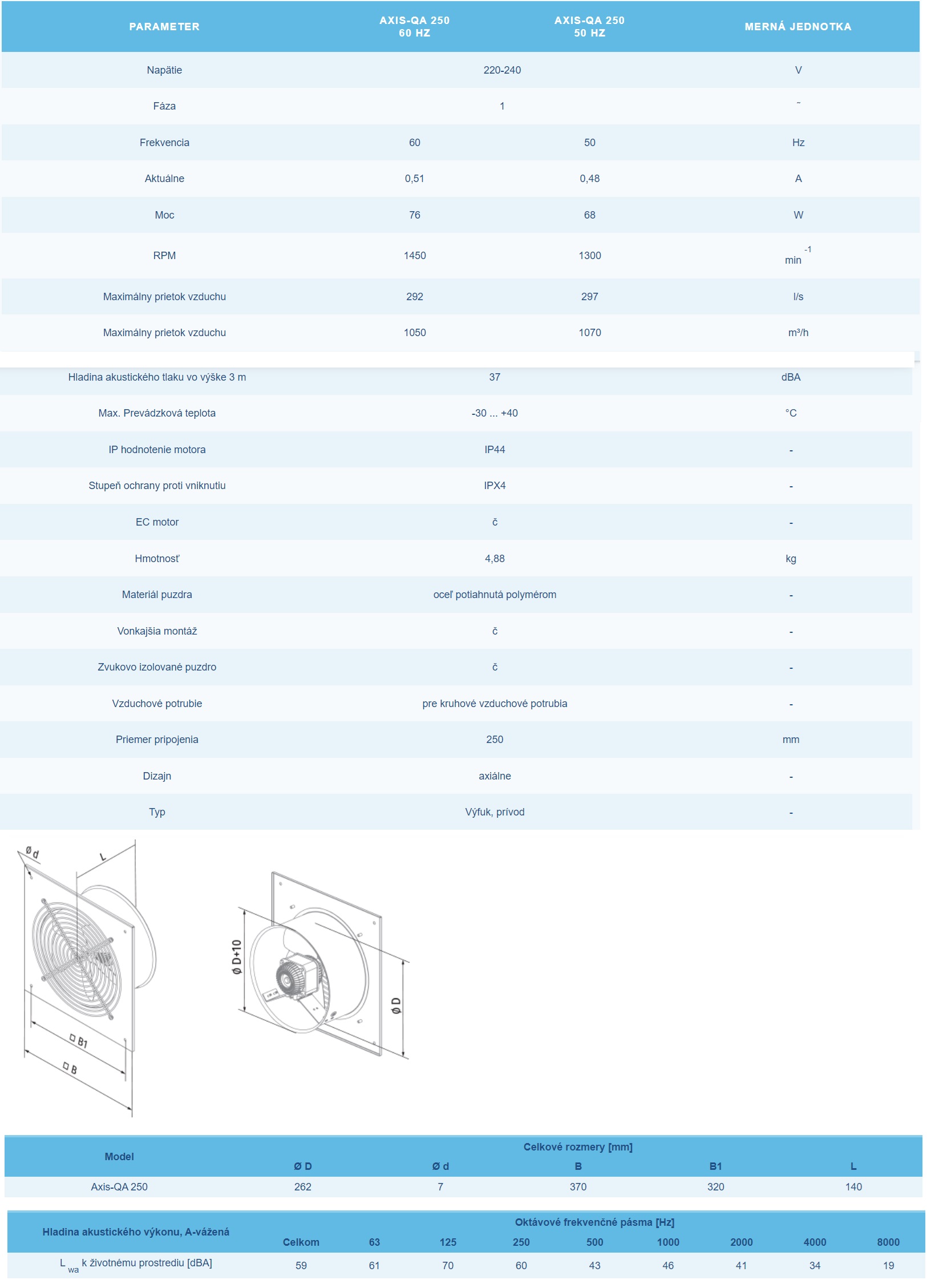 Axiálne priemyselné ventilátory nástenné Blauberg Axis-QA 250-výkon:1070m3/h .POUŽITIE