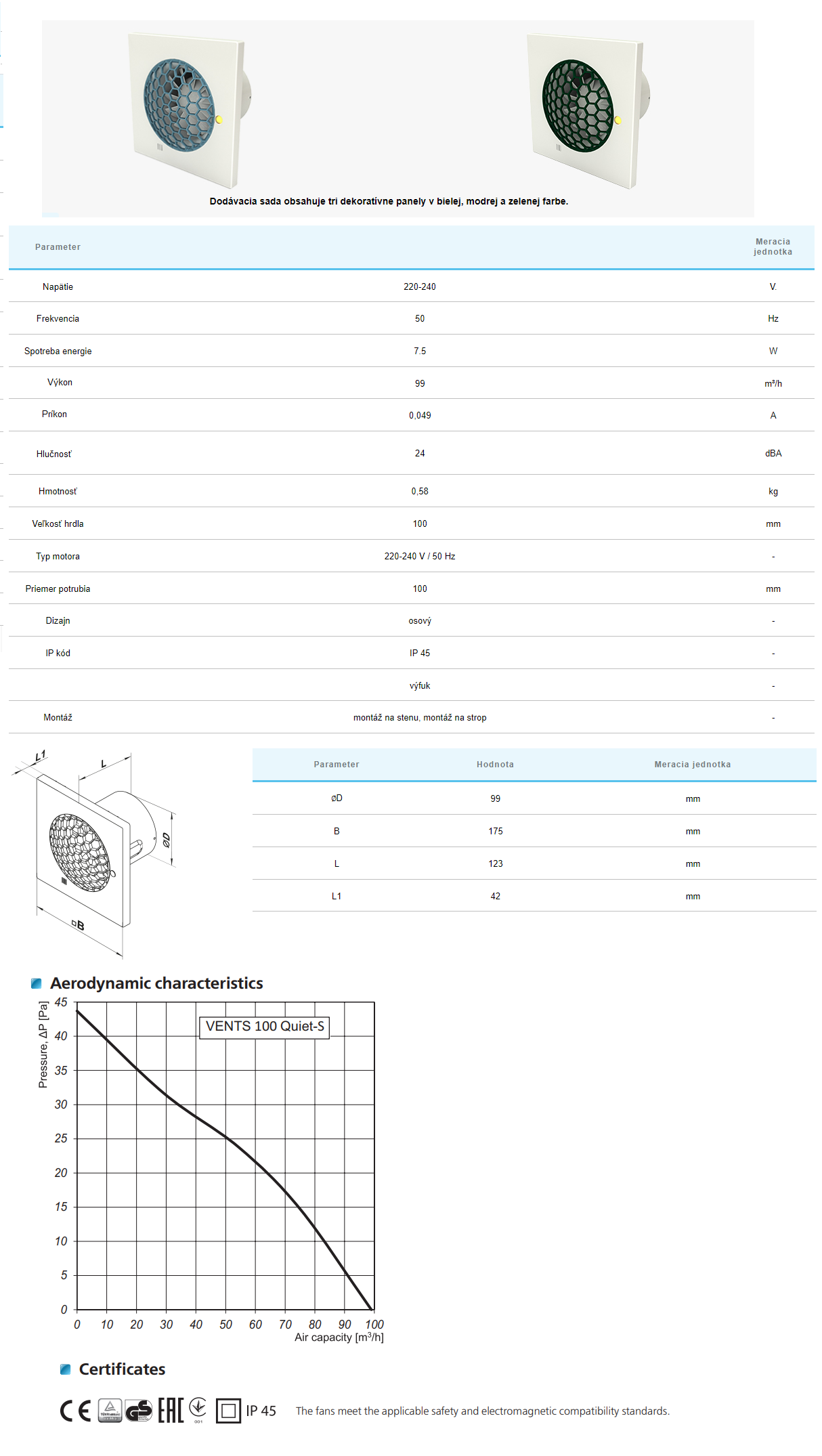 Špeciálne navrhnutý aerodynamický profil obežného kolesa poskytuje vysokú kapacitu vzduchu a nízku hlučnosť.Kompaktná konštrukcia umožňuje montáž na stenu a na strop.Skrátená príchytka na montáž do vetracieho hriadeľa alebo na pripojenie k vzduchovým potrubiam Ø 100 mm.Ventilátor je vybavený špeciálne navrhnutým spätným ventilom, ktorý zabraňuje spätnému toku a tepelným stratám počas pohotovostného režimu ventilátora.Výfuková klapka ventilátora obsahuje špeciálne navrhnuté vzduchové usmerňovače na zníženie turbulencie vzduchu, zvýšenie tlaku vzduchu a zníženie hladiny hluku.Vysoká ochrana proti vniknutiu zaručuje, že ventilátor je ideálnym riešením pre vetranie kúpeľne. Elektronické komponenty sú chránené pevnými krytmi