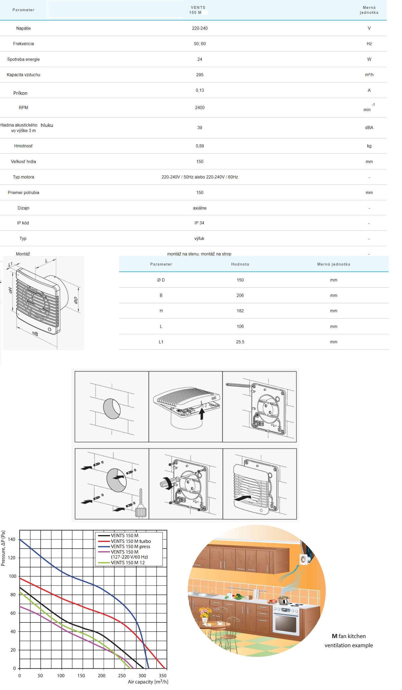 Ventilátory do kúpeľne a wc pre potrubie 150mm výkon 295m3/h