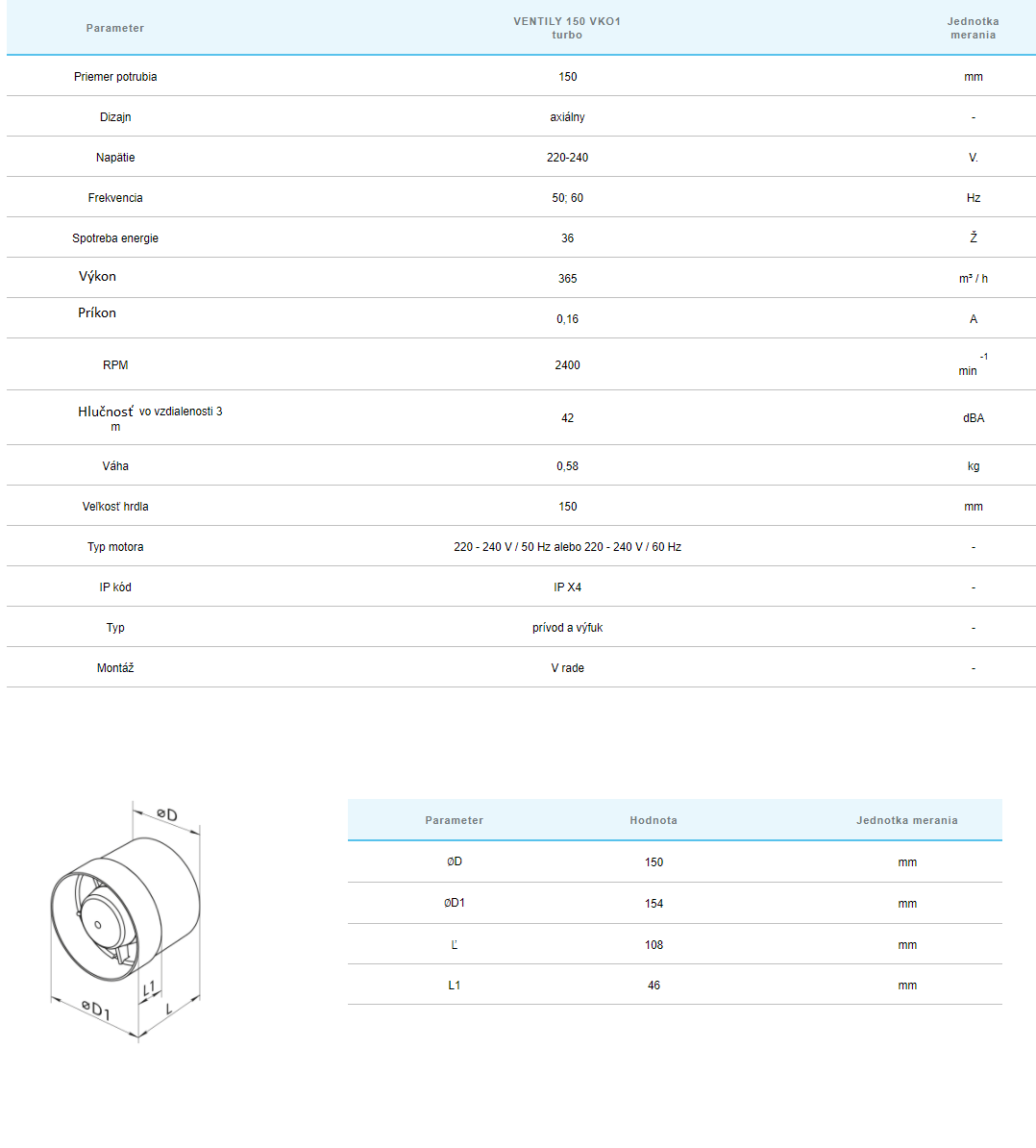 • Ventilátor VENTS 150VKO1TL-Časový dobeh-gulôčkové ložisko-zapínanie a vypínanie vypínačom na svetlo