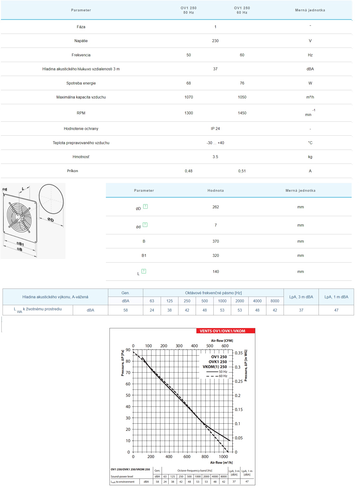 Axiálne priemyselné ventilátory nástenné sú určené pre systémy prívodu a odvodu vzduchu pre komerčné, kancelárske a iné verejné alebo priemyselné priestory, kde je požadovaný vysoký prietok vzduchu pri relatívne nízkom odpore systému.Ventilátory OV1 je možné použiť na priamy odvod vzduchu.Ventilátory OV1 je možné namontovať na vonkajšie steny. DIZAJN:Skriňa ventilátora OV1 je vyrobená z ocele s polymérnym povlakom. Svorkovnicová skrinka je vybavená káblom na diaľkové pripojenie. MOTOR:Jednofázový asynchrónny motor je vybavený tepelnou ochranou proti prehriatiu s automatickým reštartom.Motor je vybavený klznými ložiskami. Ochrana motora IP 24.KONTROLA RÝCHLOSTI Plynulá aj kroková regulácia rýchlosti sa vykonáva pomocou regulátora tyristorového alebo transformátorového. K jednému regulátoru je možné pripojiť niekoľko ventilátorov v prípade, že celkový výkon a prevádzkový prúd neprekročí menovité hodnoty regulátora. MONTÁŽ:Ventilátor sa inštaluje na povrch steny pomocou štvorcovej montážnej dosky. Ventilátor je napájaný cez vzdialenú svorkovnicu. Napájanie a inštalácia sa musia vykonávať v súlade s manuálom a schémou zapojenia na svorkovnici.