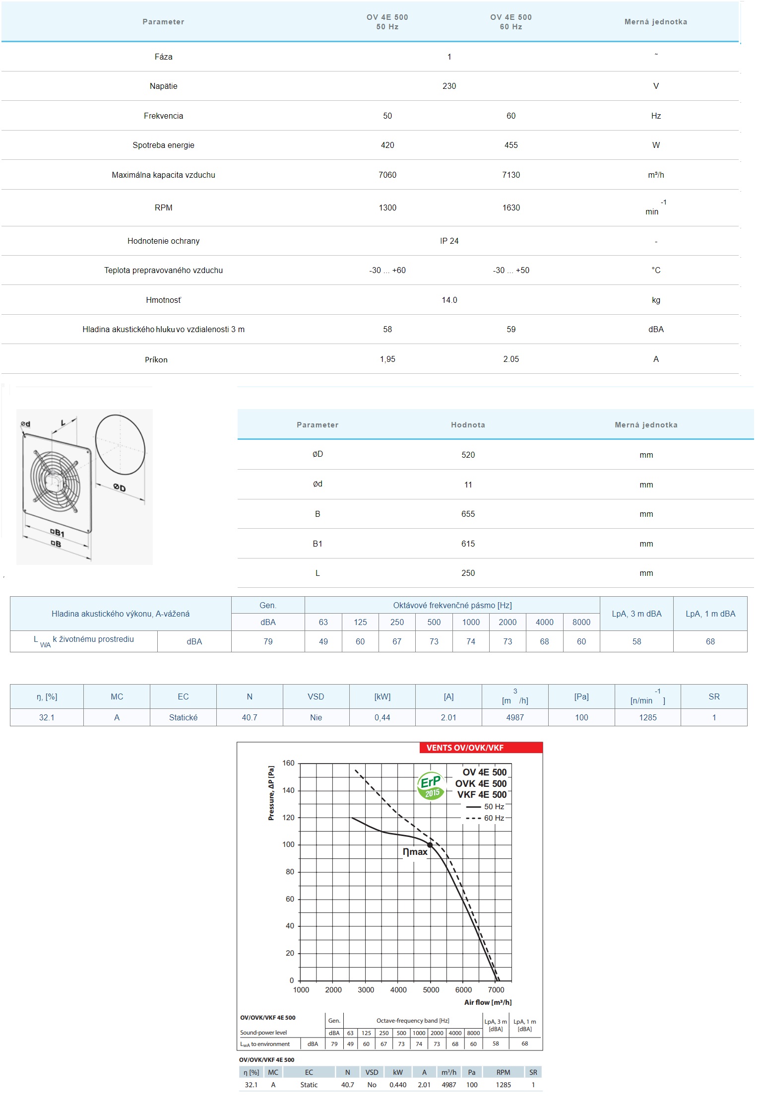 • Ventilátor VENTS OV4 E 500-výkon:7060m3/h priemer napojenia:520mm-Napätie 230V