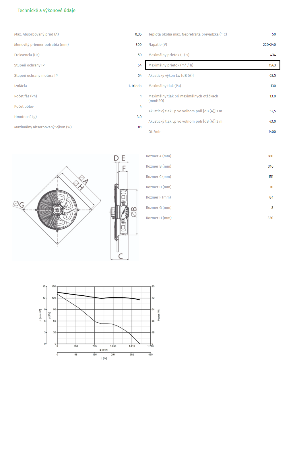 • maximálny prietok 1563 m3 / h