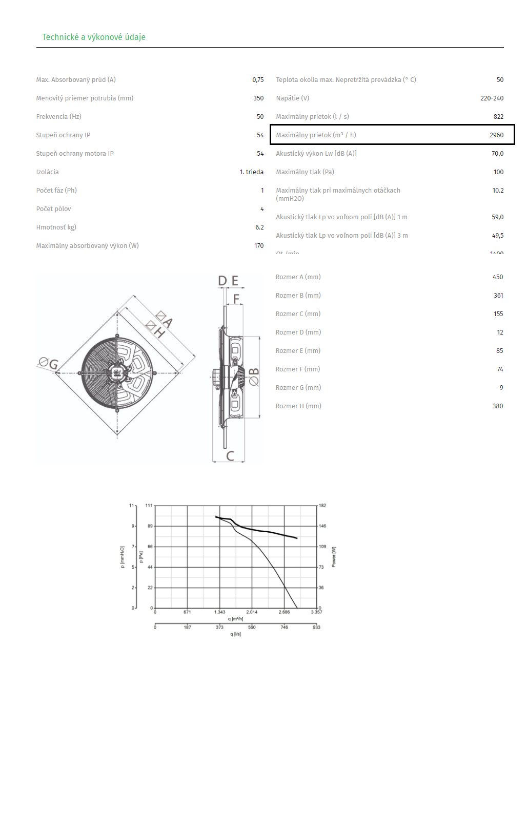 • maximálny prietok 3015 m3 / h