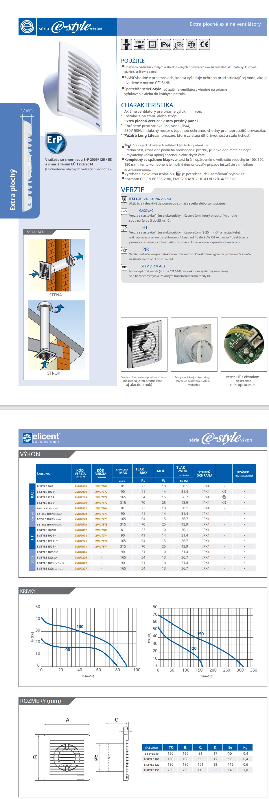 Ventilátory do kúpeľne a WC-ELICENT E-STYLE performance je séria
