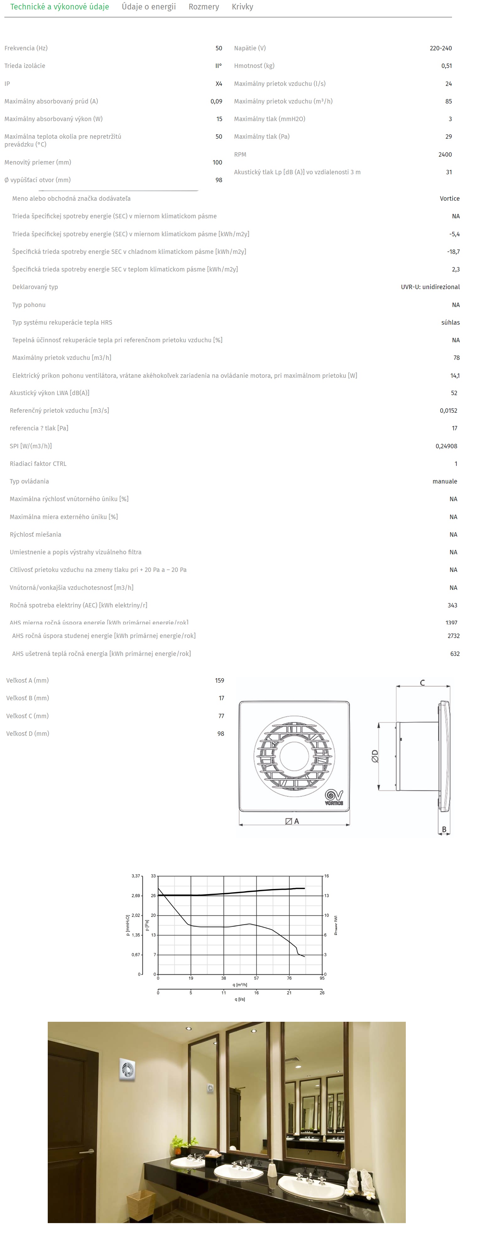 Ventilátory do kúpeľne a wc VORTICE PUNTO FILO do potrubia 100mm výkon 85 m3/h.:Konštrukcia vyrobená z plastovej živice, ktorá je odolná proti starnutiu vplyvom slnečného žiarenia (UV odolná). Motor chránený proti prehriatiu s hriadeľom uloženým na samomazných ložiskách v puzdrách, spárovaný so špirálovým obežným kolom vyrobeným z termoplastického materiálu, osadeným lopatkami.