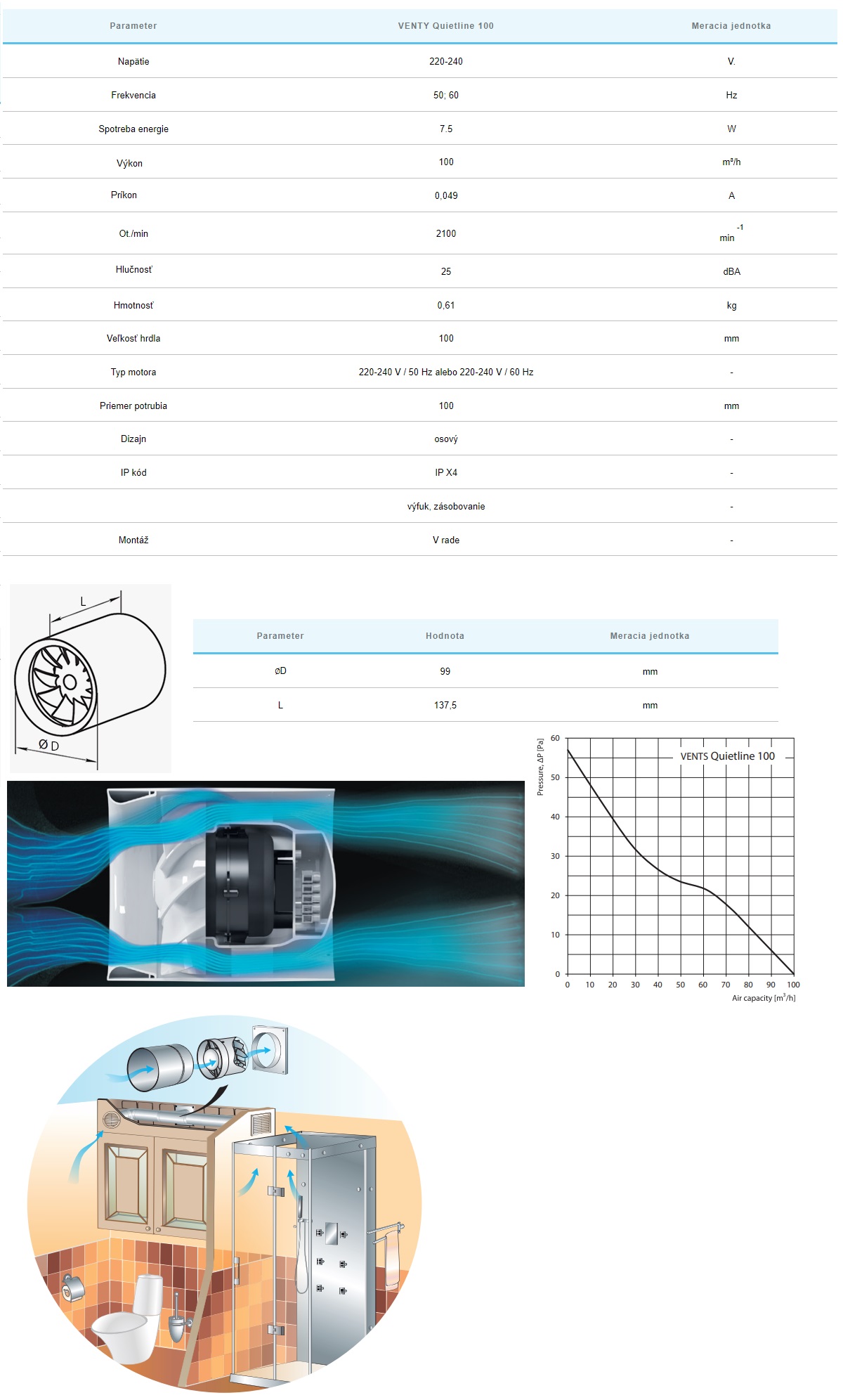- VENTS Quietline modely sú vybavené jednofázovým motorom