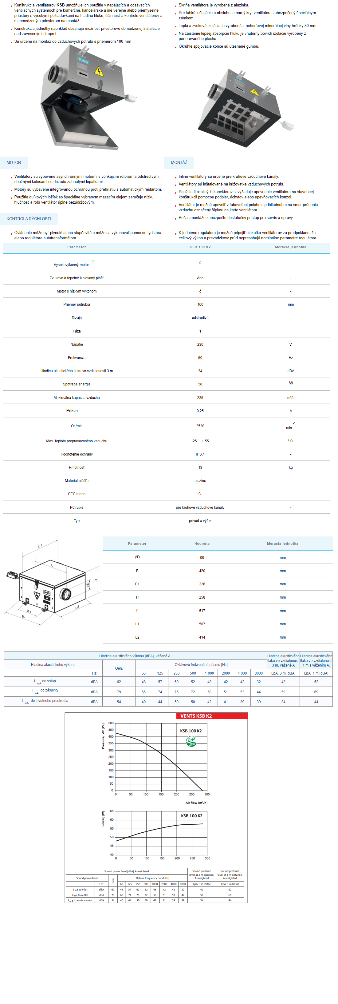 Odstredivé ventilátory Ø100mm výkon 285m3/h nízkohlukové