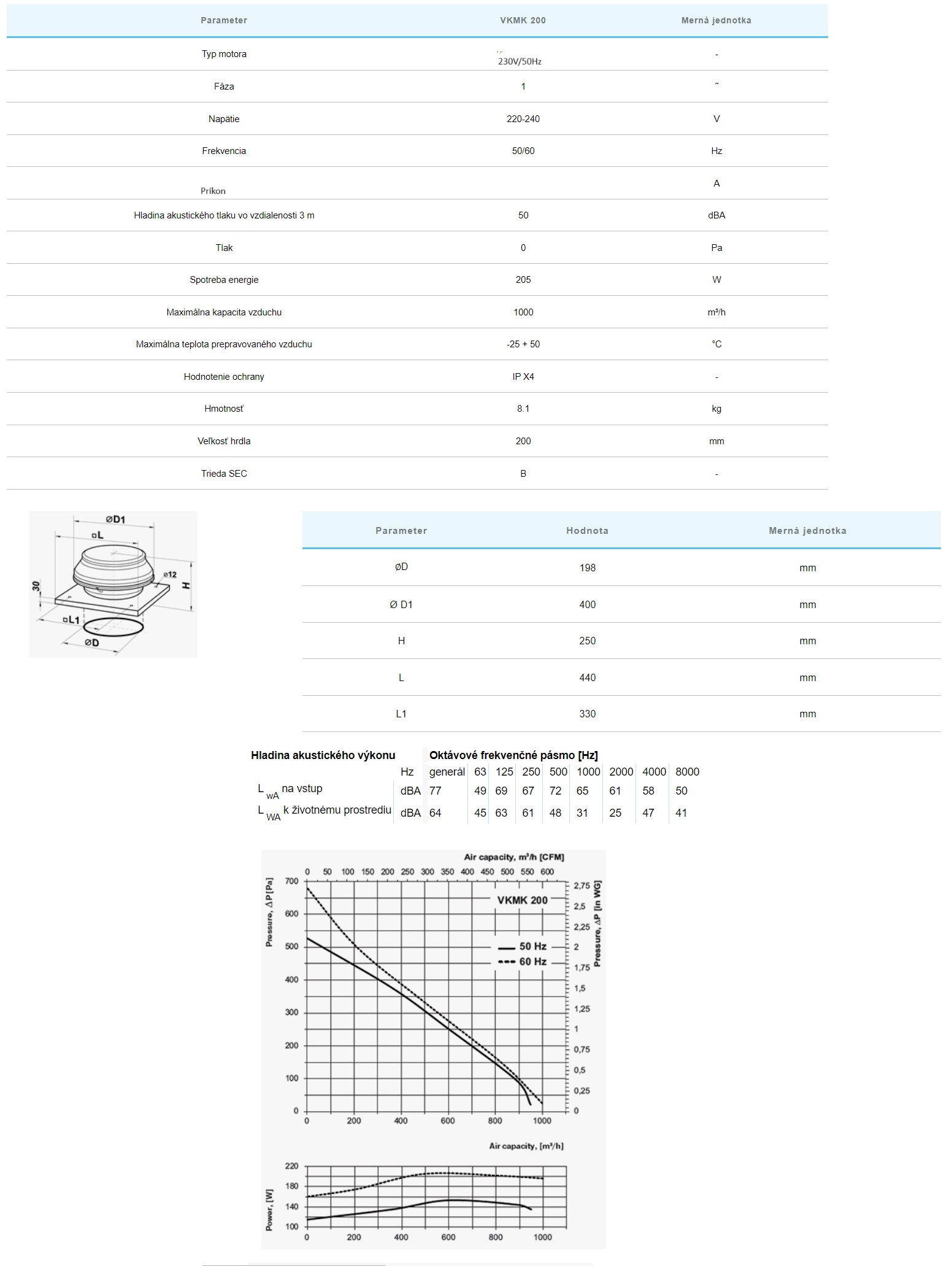 Strešné odstredivé ventilátory slúžia na odsávacie ventilačné systémy pre obchodné, kancelárske a iné verejné alebo priemyselné priestory. Vhodné na montáž na všetky typy striech, ako aj na pripojenie na kruhové vzduchové potrubie Ø 200 mm. DIZAJN Kryt ventilátora je vyrobený z ocele s polymérnym povlakom. . MOTOR Odstredivé obežné koleso s dozadu zahnutými lopatkami je poháňané jednofázovým motorom s vonkajším rotorom. Motory sú vybavené tepelnou ochranou proti prehriatiu s automatickým reštartom ako aj guľôčkovými ložiskami pre dlhú životnosť. Pre presné vlastnosti, bezpečnú prevádzku a nízku hlučnosť ventilátora je každá turbína pri montáži dynamicky vyvážená. Krytie motora IP44. KONTROLA RÝCHLOSTI Plynulé alebo skokové riadenie rýchlosti sa vykonáva pomocou tyristorového alebo autotransformátorového regulátora. K jednému regulátoru je možné pripojiť viacero ventilátorov v prípade, že celkový výkon a prevádzkový prúd nepresiahnu menovité hodnoty regulátora. MONTÁŽ Ventilátor sa montuje na strechu priamo nad vetracie potrubie alebo šachtu a je pevne pripevnený k rovnej ploche pomocou spojovacej dosky. Elektrické pripojenie a montáž je potrebné vykonať v súlade s návodom a schémou zapojenia na svorkovnici.