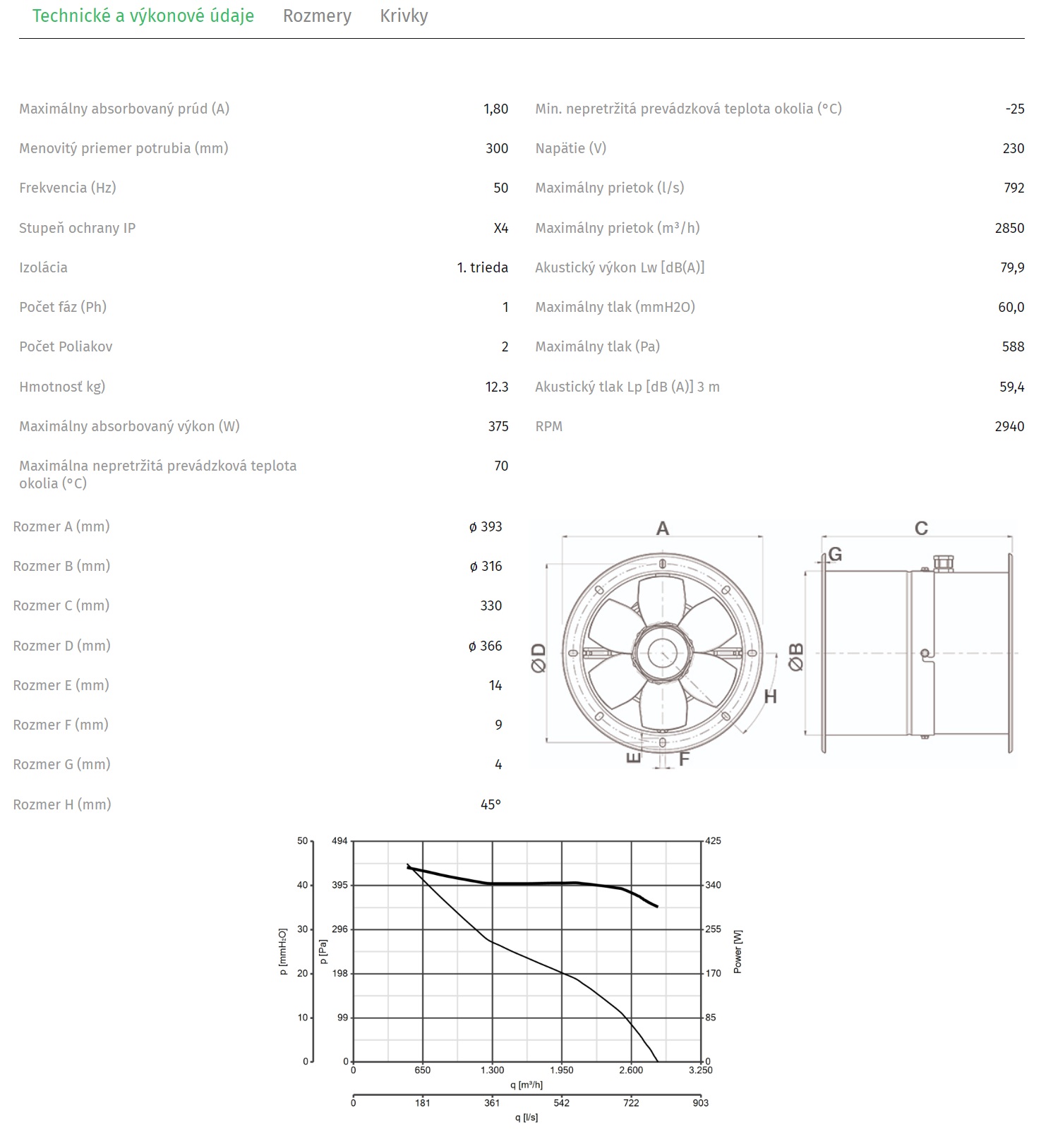 • Maximálny prietok 2 860 m3/h.