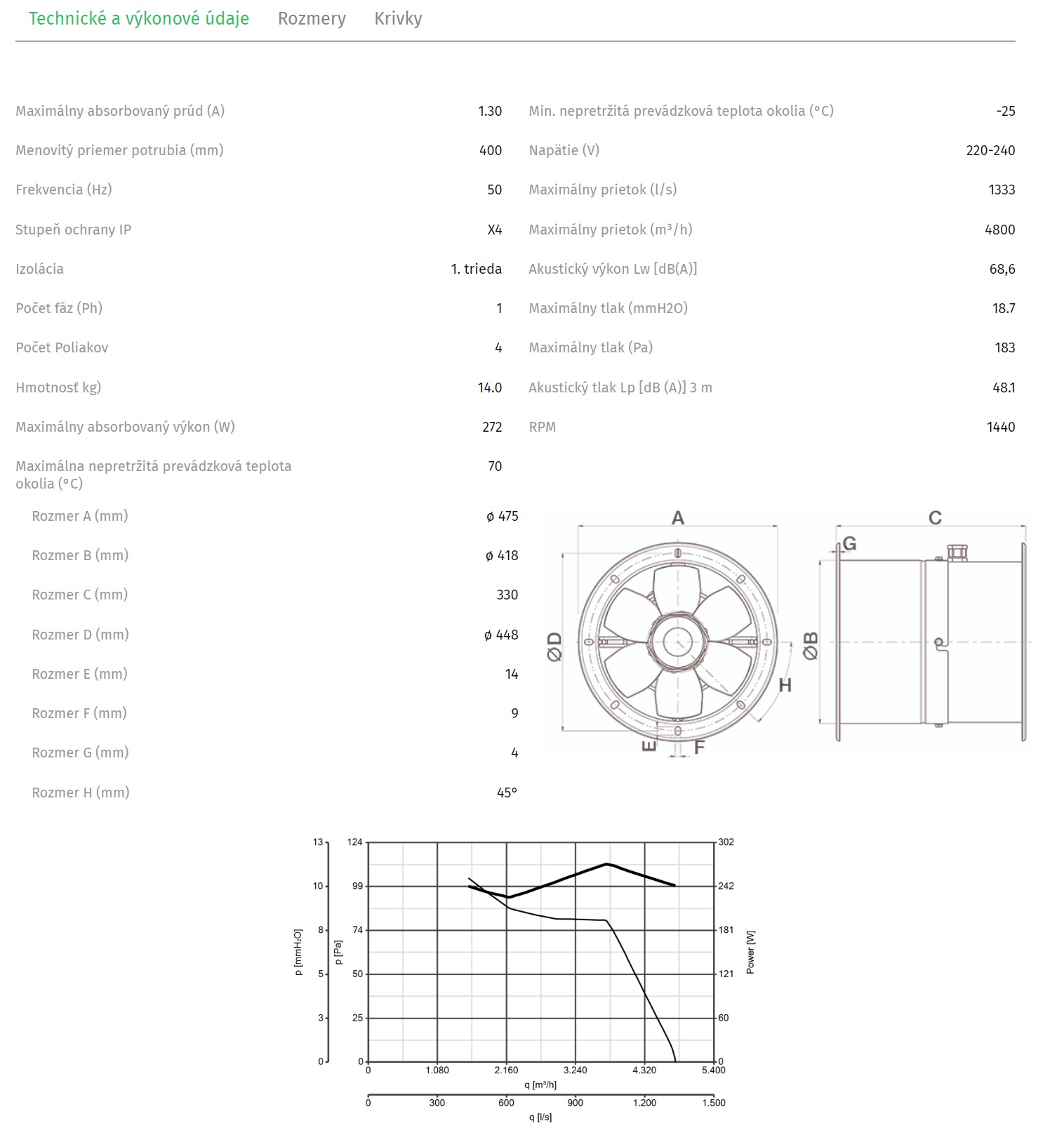• Maximálny prietok 4800 m3/h.