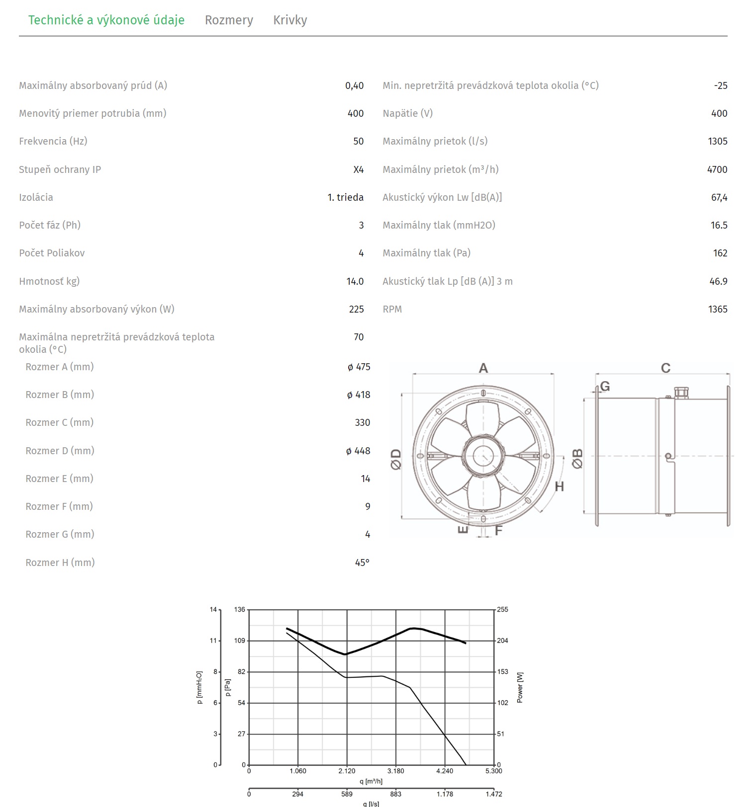 Potrubný priemyselný axiálny ventilátor.Menovitý priemer 400 mm
