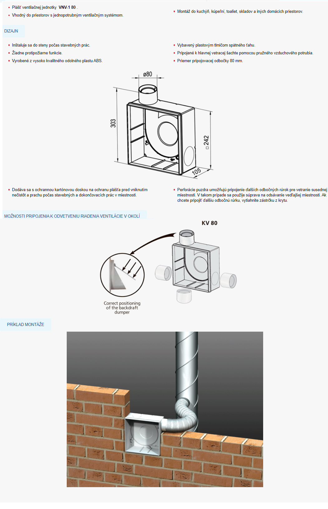 Zápustná krabica pre radiálne ventilátory VENTS VNV-1 a Blauberg Valeo